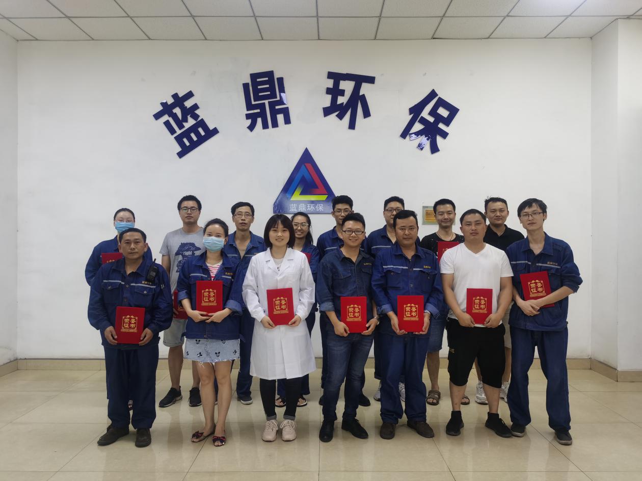 最后,獲獎員工在集團logo下合影留念,一起見證攀藍鼎的成長.環(huán)保之路任重道遠,愿全體不忘初心,不負韶華,艱苦奮斗!