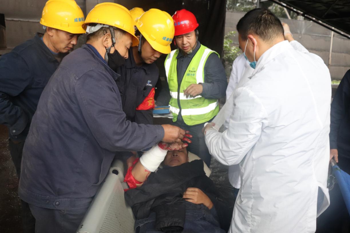 成渝釩鈦燒結(jié)廠為了進(jìn)一步推動(dòng)“鑄安2020利劍活動(dòng)”的有效開展,持續(xù)提高崗位員工風(fēng)險(xiǎn)防范意識(shí)和自救互救等突發(fā)事件應(yīng)對(duì)能力,10月13日10:00,燒結(jié)廠于原料車間開展皮帶絞傷事故應(yīng)急演練。內(nèi)江藍(lán)鼎生產(chǎn)部副部長陳威帶隊(duì)共10人參加本次演練;燒結(jié)廠副廠長李漢洲、廠長助理王武鼎、相關(guān)科主管、員工代表等30余人參加本次演練活動(dòng)。