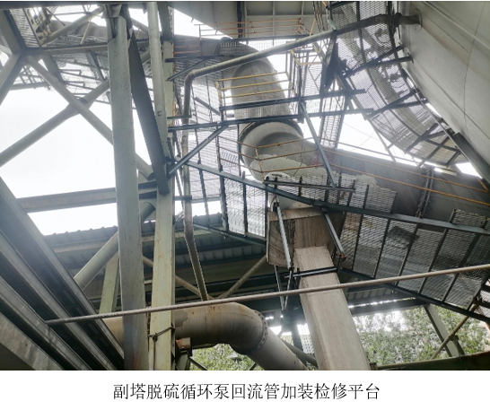西昌藍(lán)鼎在7月初順利完成了球團(tuán)脫硫循環(huán)泵管道及回流管檢修平臺(tái)的改造工程。本次改造工程歷時(shí)兩個(gè)月,涉及的改造內(nèi)容有6臺(tái)脫硫循環(huán)泵管道最高位出口處以和副塔脫硫循環(huán)泵回流管全管道的檢修平臺(tái)加裝工作。